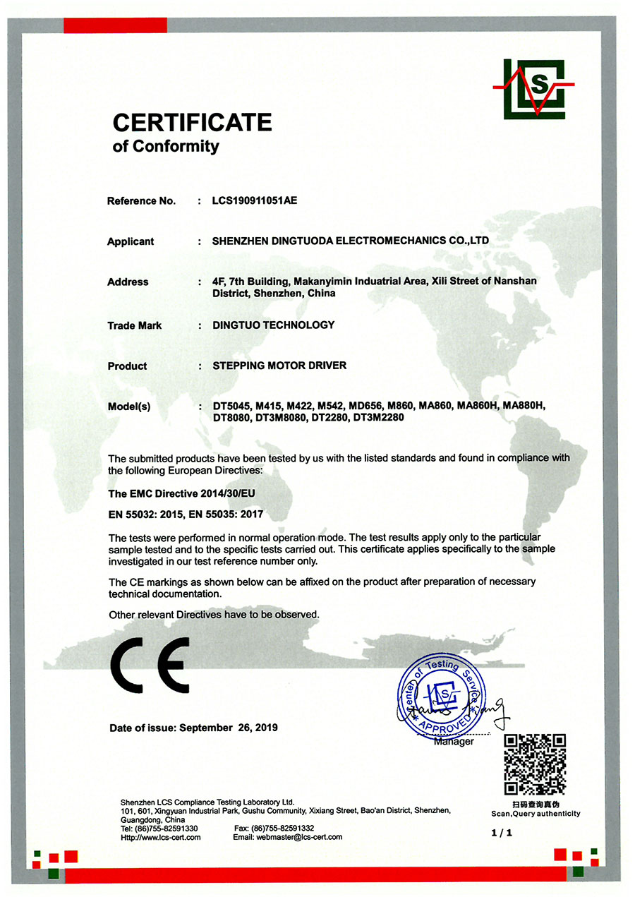 首頁->產(chǎn)品認(rèn)證->步進(jìn)驅(qū)動(dòng)器CE認(rèn)證證書