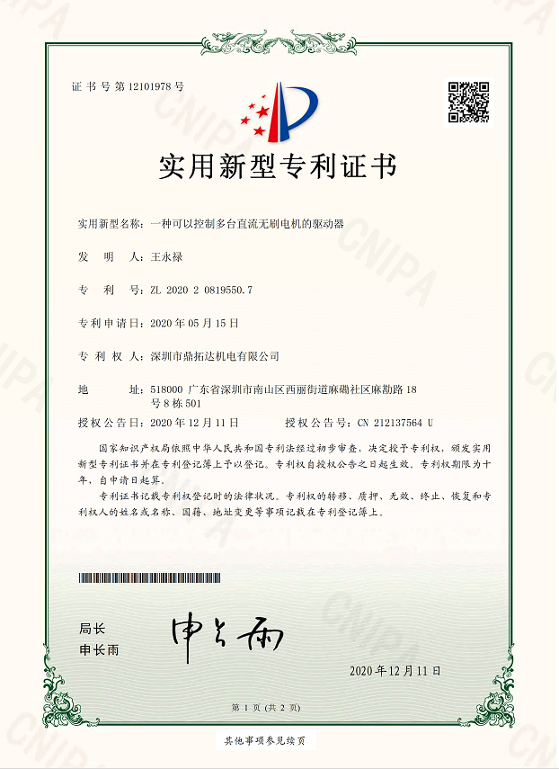 首頁->產(chǎn)品認(rèn)證->一種可以控制多臺直流無刷電機的驅(qū)動器